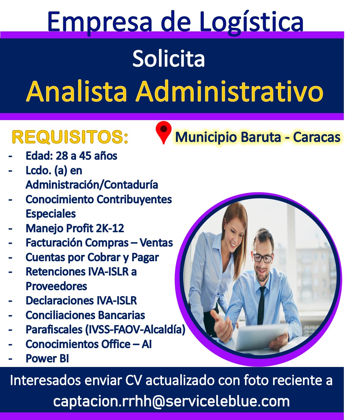 Empresa de servicios logísticos se encuentra en la búsqueda de ANALISTA DE ADMINISTRACIÓN, para la zona de Baruta